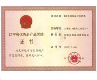 遼寧省優秀新產品獎勵證書